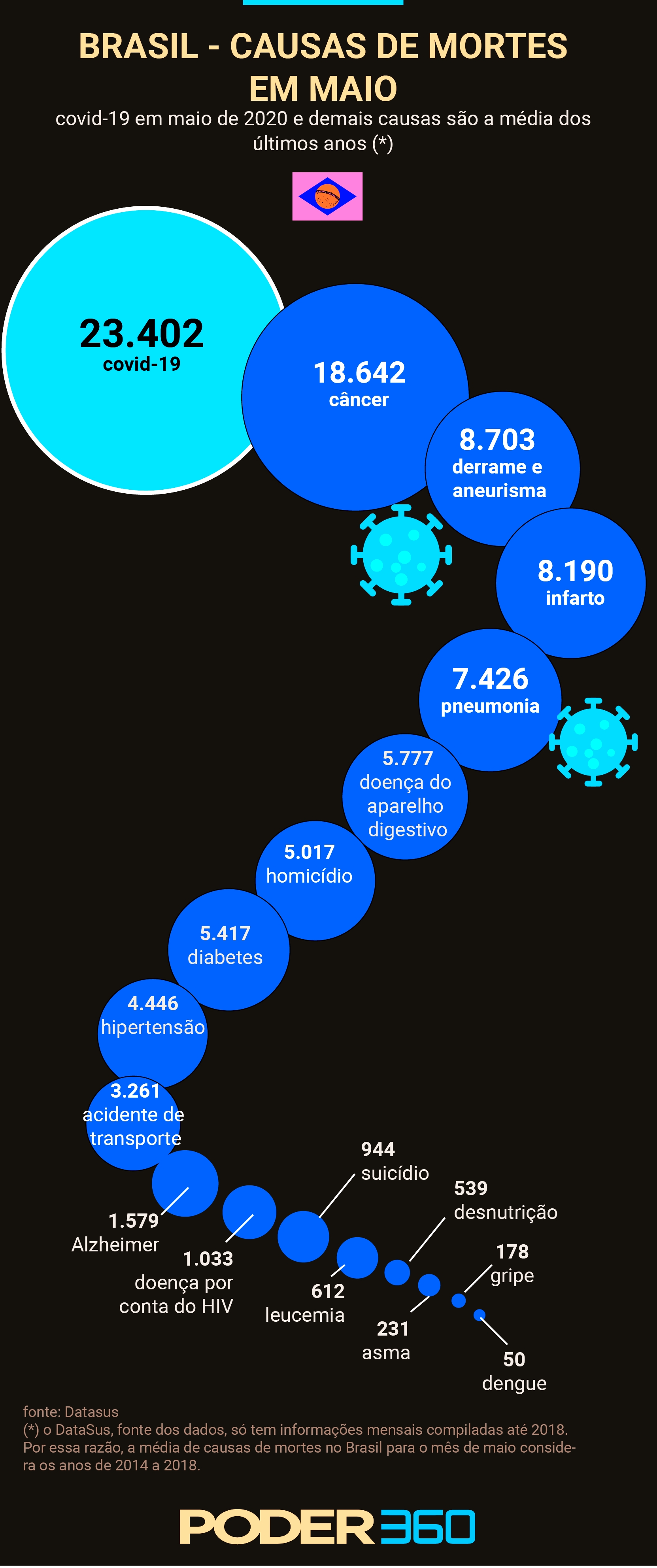 Causas de Mortes no Brasil Escrito por André Belleza. Postado em Infográficos Avaliação do Usuário Por favor, avalie Votar 1 Votar 2 Votar 3 Votar 4 Votar 5 Percentual Causas de mortes em Maio no Brasil. Tags: maio de 2020, causa de mortes Imprimir Email /index.php/salas/131-especial/infograficos/1713-perfil-geek /index.php/salas/131-especial/infograficos/1709-uerj-cadastros-e-bolsas-2016-a-2020