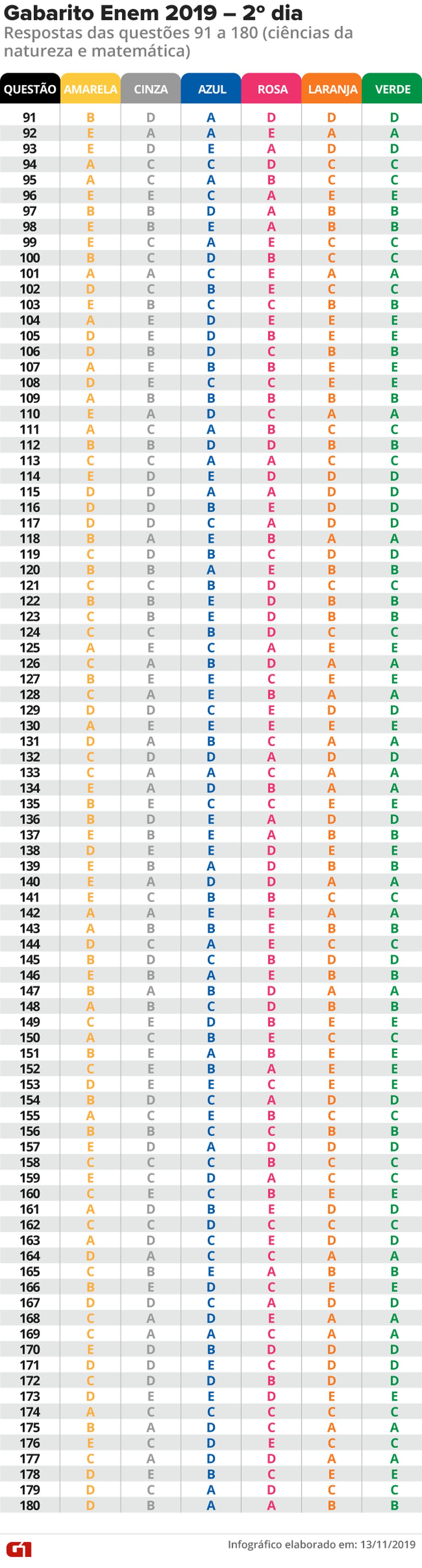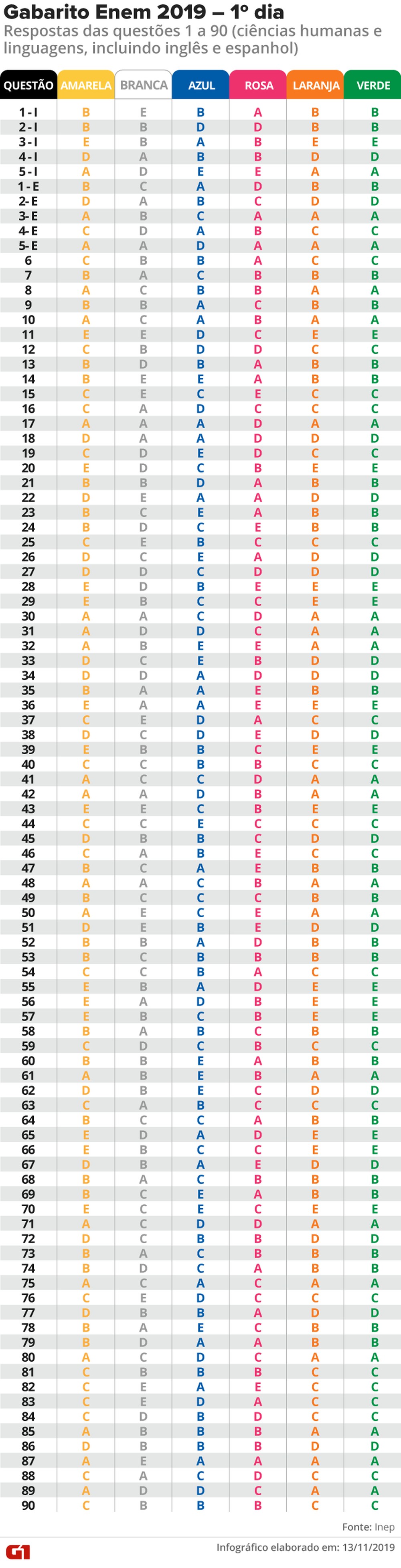 Gabarito do Enem 2019