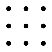 Para o experimento, foi usado o desafio abaixo. Você consegue unir todos os nove pontos usando apenas quatro traços retos sem tirar a lápis da página?