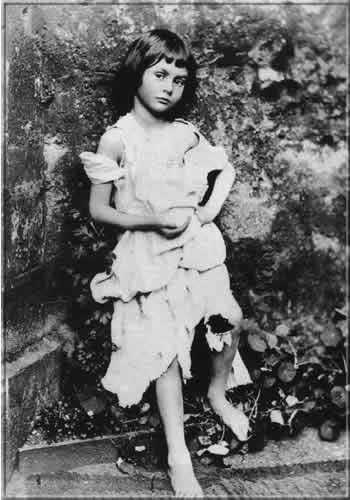 A foto A Pequena Mendiga (acima) foi tirada pelo próprio Carroll quando a menina tinha ainda 7 anos - além de escritor, ele era fotógrafo nas horas vagas. Consta que Alice gostava muito das histórias que ele contava, e sua personalidade teria inspirado a personagem.